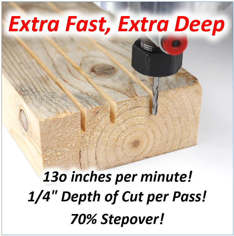 Featuring a staggering 1/4" depth of cut per pass, 80ipm plunge rate, 70% step-over, and a whopping 130 inches per minute cut rate, the BADGER is undisputed when it comes to rapid material removal from your CNC router woodworking projects.